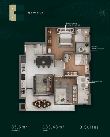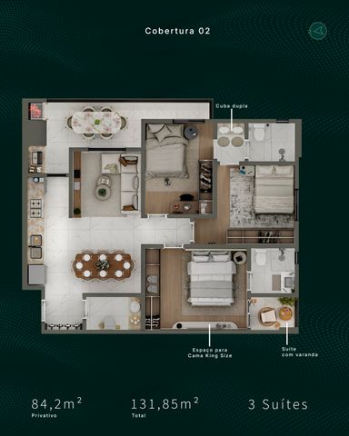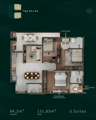 - 📐 Plantas Inteligentes: Unidades de 84m² e 85m² (1 Suíte Master com varanda privativa + 2 Demi-Suítes).