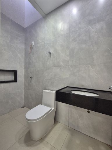 - Bancadas dos banheiros em granito com cuba em cerâmica